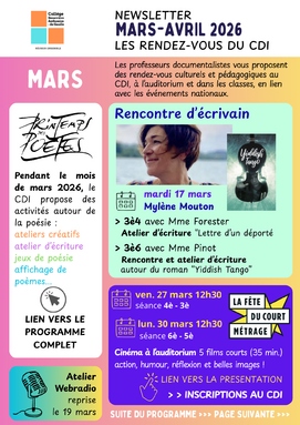 Par admin Guimet, publié le mercredi 11 mars 2026 10:54 - Mis à jour le mercredi 11 mars 2026 10:54Tous les RV pédagogiques et culturels du CDI -