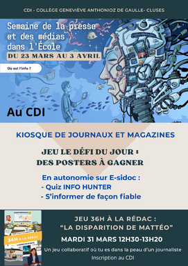 SEMAINE DE LA PRESSE ET DES MEDIAS A L'ÉCOLE du 23 Mars au 3 avril au CDI
