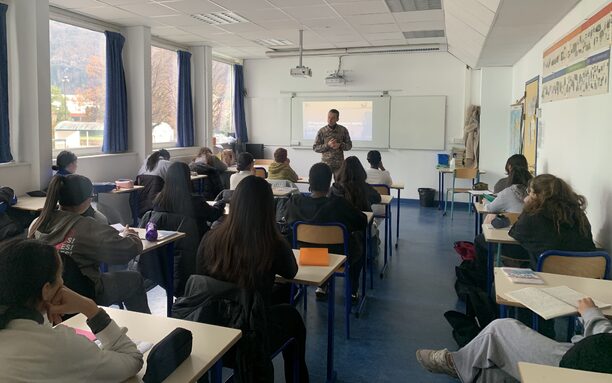 Les élèves de la classe Citoyenneté défense découvrent l’organisation de l’armée française avec le capitaine de la 6e compagnie